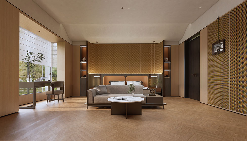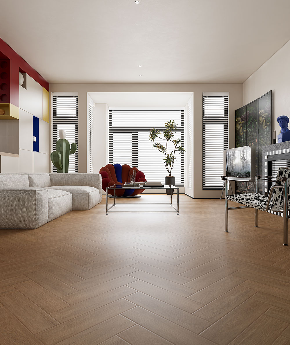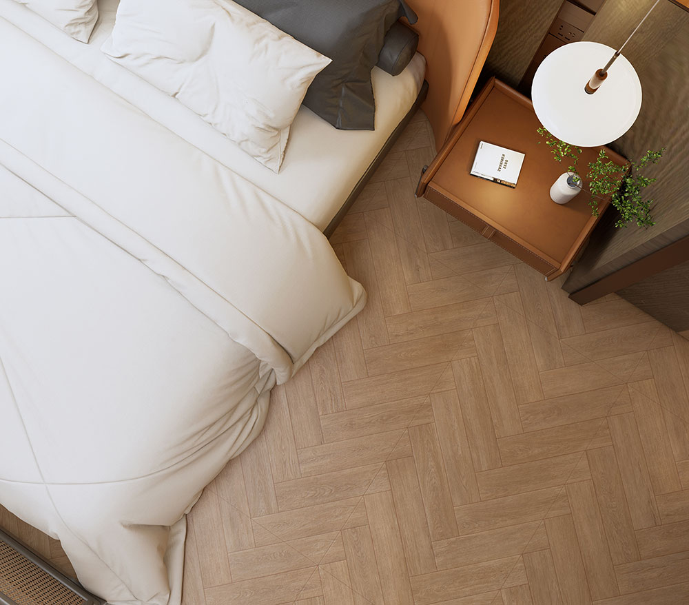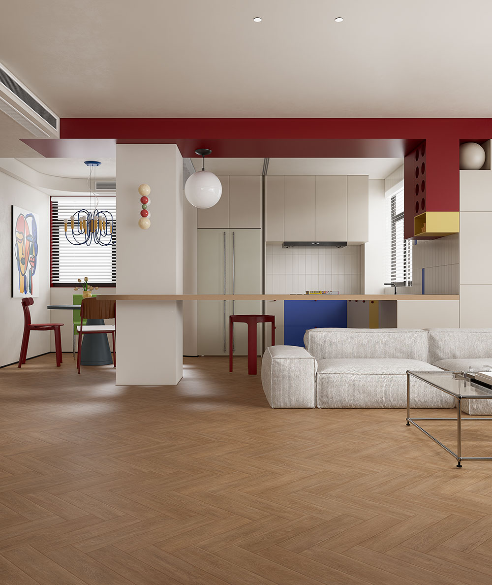 产品描述:人字形肌理以极简笔触勾连自然韵律,深浅交织的微痕如书页疏影,在空间铺展沉静栖居的诗性语境。