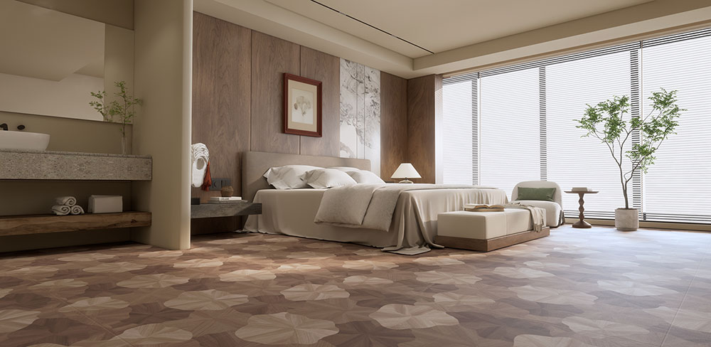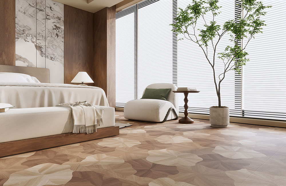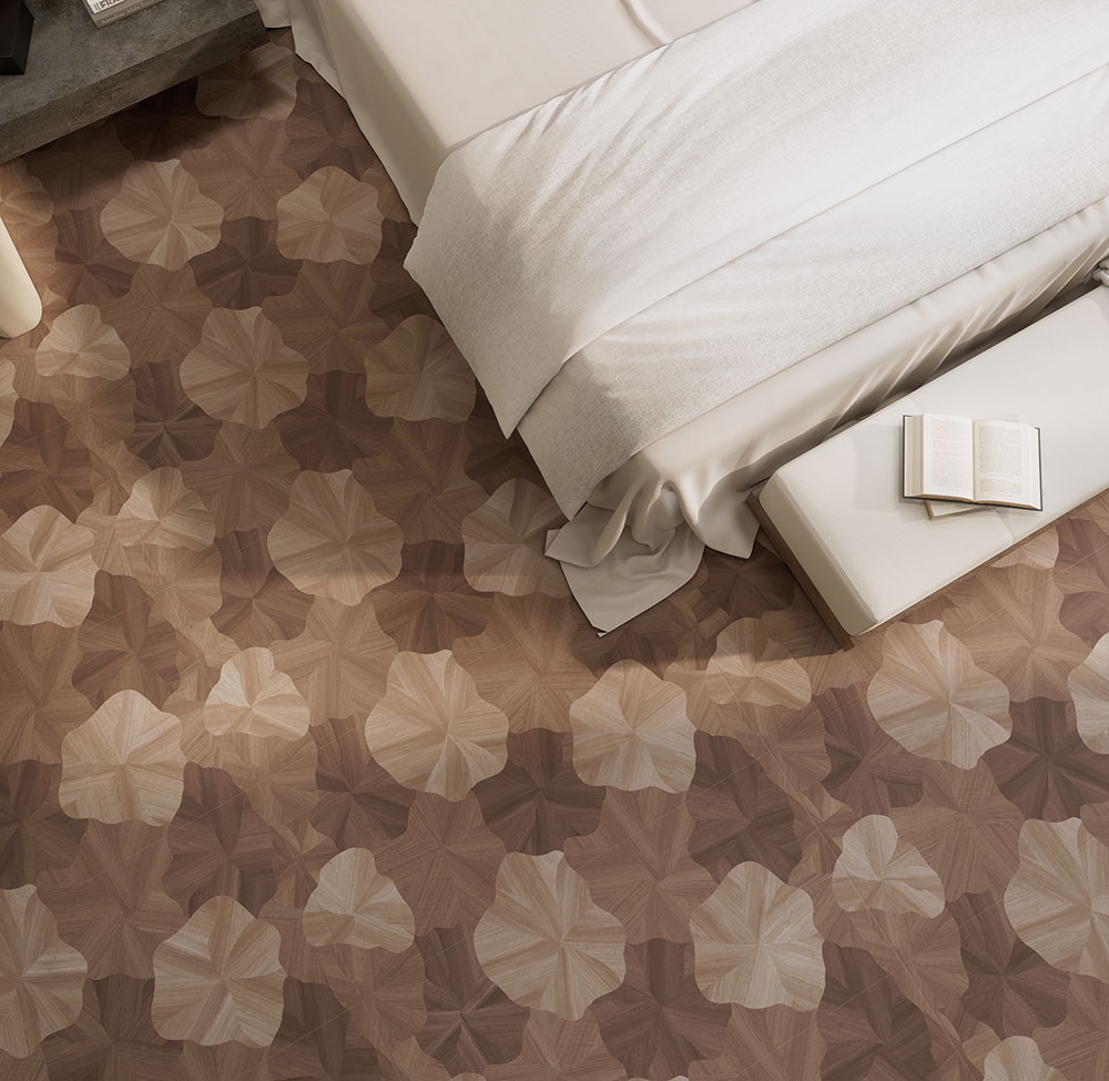 产品描述:熔铸秋日岛屿的剪影,深浅木纹托起落叶绒光——每一寸拼花都在地面涌动温暖的诗行。